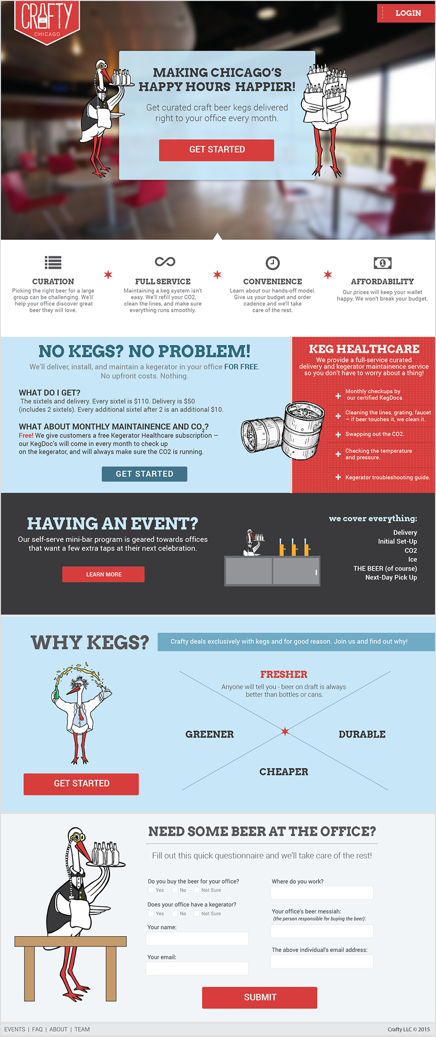 Crafty’s landing page was simple as its function is mostly to inform. The founders wanted to convey the light-hearted vibe of the company while remaining respectable enough to garner B2B sales.